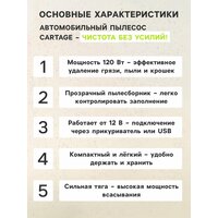 Пылесос автомобильный CARTAGE, 5 насадок, 140 Вт, 12 В, черный: сравнение цен, характеристики, фото, актуальное наличие и цены.