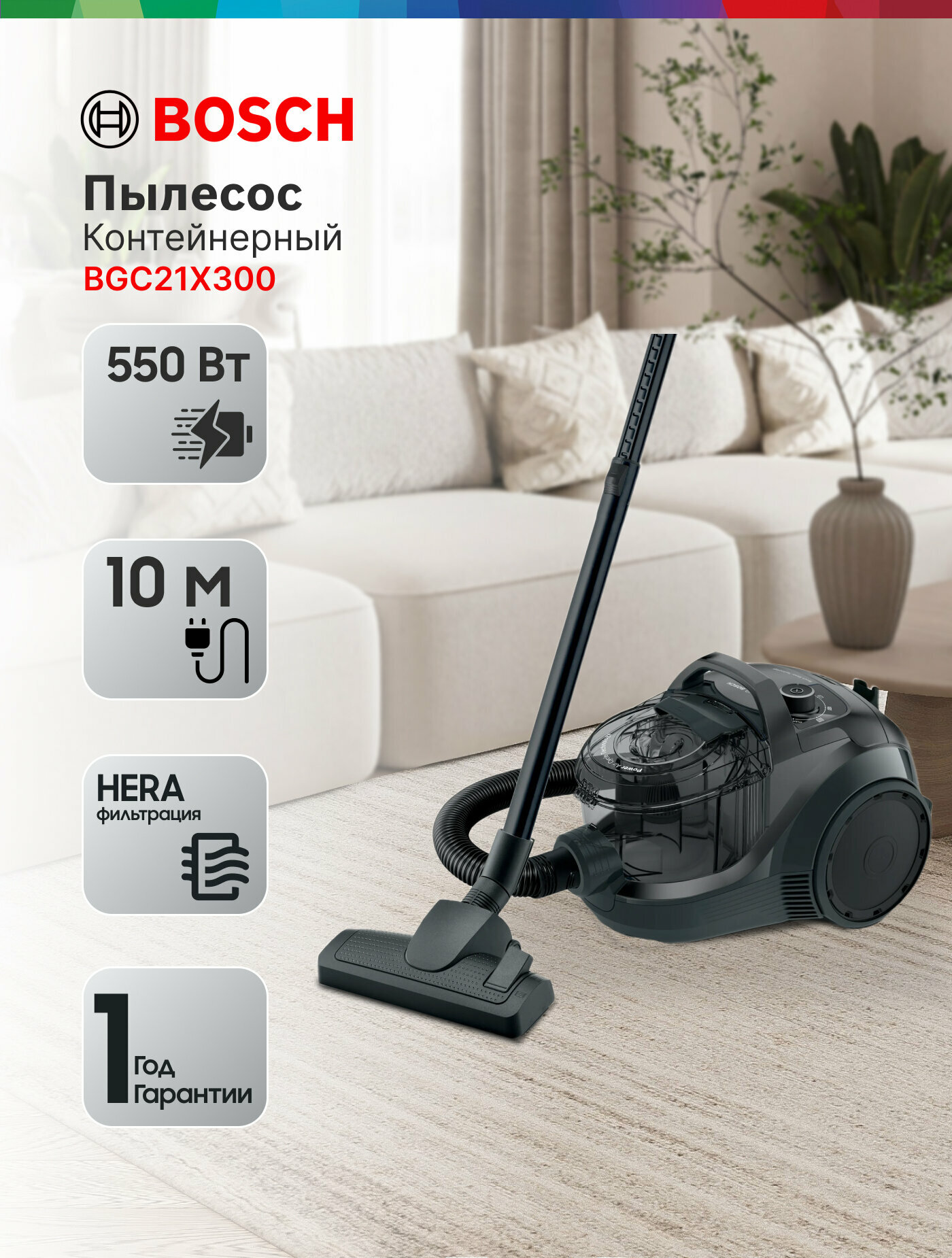 Купить Пылесос Bosch Serie 4 BGC21X300, 550 Вт, уборка: сухая, пылесборник — контейнер, 2 л, черный с доставкой по всей России.