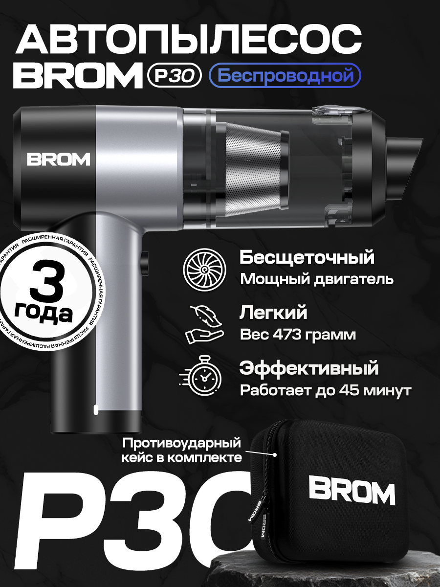 Купить Пылесос для автомобиля BROM P30 беспроводной мощный пылесос для машины с доставкой по всей России. Пылесос для автомобиля BROM P30 беспроводной мощный пылесос для машины: сравнение цен, характеристики, фото, актуальное наличие и цены.
