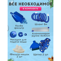 Колба фильтра, шланг 6м, алюминиевая ручка 4х40см, насадки для подачи воды, фильтр-мешок 2шт, щетка 2шт