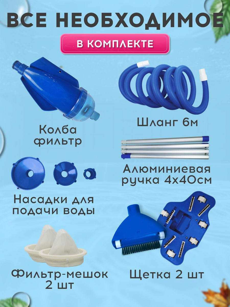 Купить Пылесос для бассейна вакуумный с фильтром донный с щеткой, большой комплект с доставкой по всей России. Пылесос для бассейна вакуумный с фильтром донный с щеткой, большой комплект: сравнение цен, характеристики, фото, актуальное наличие и цены.