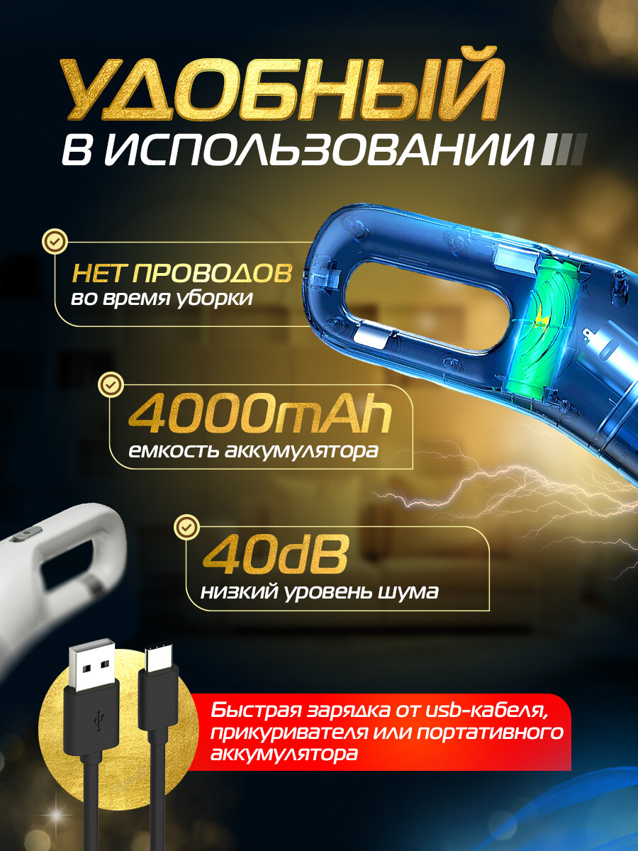 Пылесос для дома, автомобиля и техники с контейнером и насадками мощный ручной