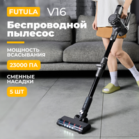 Пылесос для дома Futula V16, серый, вертикальный, аккумуляторный с LED дисплеем: сравнение цен, характеристики, фото, актуальное наличие и цены.