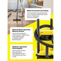 Строительный пылесос Karcher WD 2 PLUS V-15/4/18 является универсальным решением для различных типов загрязнений. Он может использоваться как для сухой, так и влажной уборки. Вместительный контейнер емкостью 15 л позволяет не отвлекаться на устранение мусора и выполнять уборку весьма продолжительное время. Функция продувки помогает легко избавляться от легких строительных отходов с поверхностей. Karcher WD 2 PLUS V-15/4/18 оборудован всасывающим шлангом длиной 1.8 м и сетевым кабелем длиной 4 м для удобства в пользовании. Дополнительно в комплекте поставляются сменные насадки, фильтр, мешок и всасывающие трубки.
