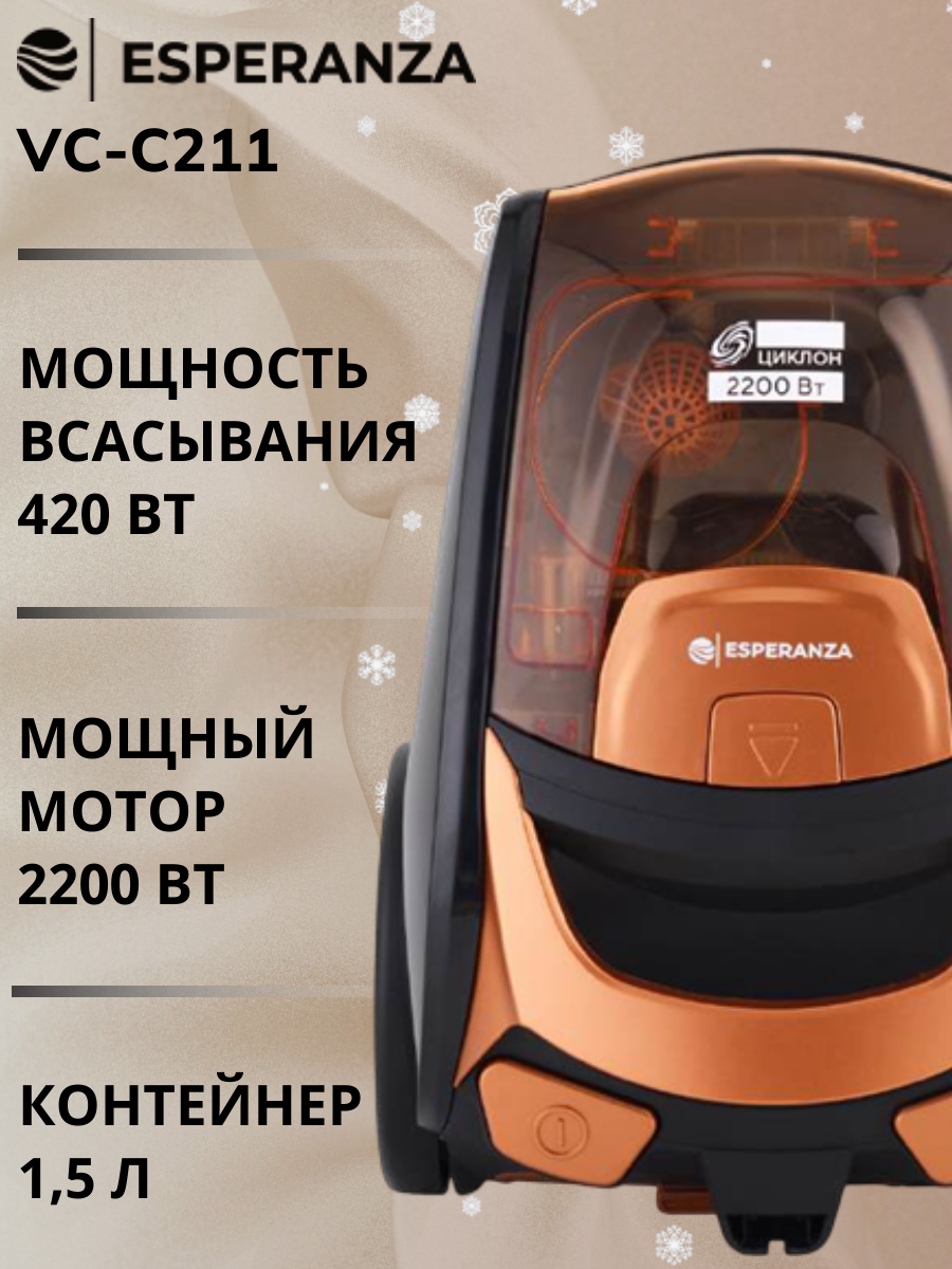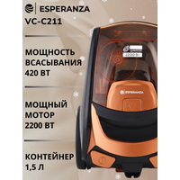 С пылесосом ESPERANZA VC-С211 вам не придется тратить много времени на уборку. Это идеальное решение для современных хозяек, которые ценят качество и удобство. Надежность, высокая производительность и доступная цена делают его одним из лучших вариантов в своей категории.