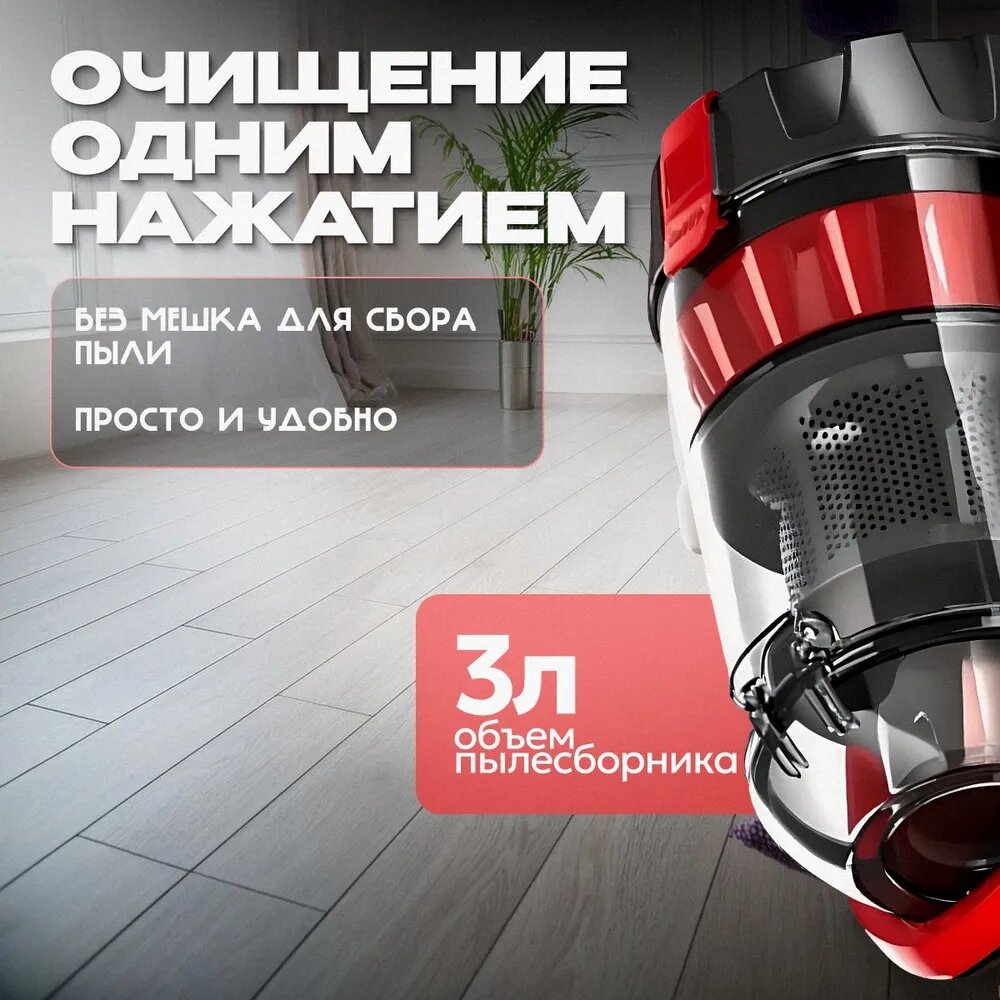 Пылесос для дома с контейнером 3л, 3000 Вт, бытовой, проводной, красный