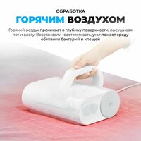 Пылесос для удаления пылевых клещей Xiaomi Dust Mite Vacuum Cleaner Pro дополнительно оснащен функцией подачи горячего воздуха, который выделяется при температуре 55°C. Эта температура оптимальна для уничтожения пылевых клещей, так как она разрушает их структуры и подавляет их жизнедеятельность. Горячий воздух не только эффективно уничтожает клещей, но и способствует глубокой сушке тканей, что препятствует их регенерации. Постельные принадлежности и мягкая мебель после обработки остаются сухими и пушистыми, что предотвращает образование сырости и плесени - среды, в которой активно размножаются клещи и бактерии. Постоянное использование этой функции помогает поддерживать идеальную гигиену и свежесть в доме, обеспечивая надежную защиту от аллергенов.