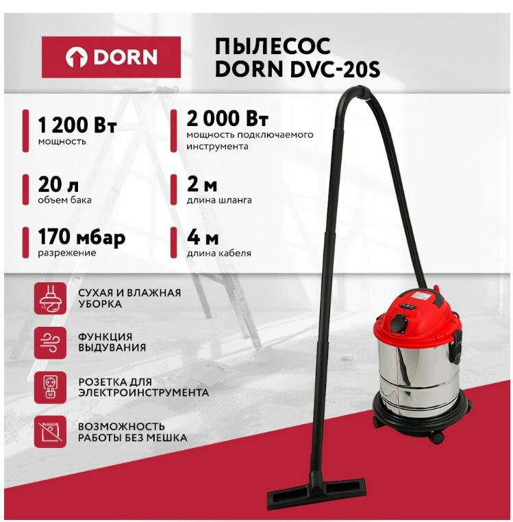 Купить Пылесос DORN DVC-20S 1200 Вт бак 20 л с доставкой по всей России. Пылесос DORN DVC-20S 1200 Вт бак 20 л: сравнение цен, характеристики, фото, актуальное наличие и цены.