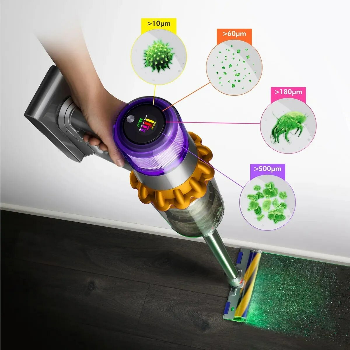 Пылесос Dyson V15 Detect Absolute (SV47) Yellow/Nickel - мощный беспроводной пылесос от известного бренда Dyson, который зарекомендовал себя на рынке как производитель надежной и качественной техники для уборки.