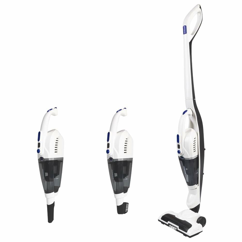 Моющийся HEPA-фильтр, 2 двигателя, 2 скорости работы, Конструкция 2 в 1: ручной и вертикальный, Индикатор заряда батареи, Моющийся съемный контейнер пылесборника, Высокая мощность всасывания, Светодиодная подсветка, 2 насадки в комплекте, База для парковк