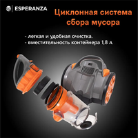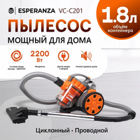 Купить Пылесос для дома бытовой ESPERANZA VC-С201 с контейнером 1,8 литра, мощностью 2200w, шнуром длиной 5м и с 2 насадками. Цвет: оранжевый с доставкой по всей России.