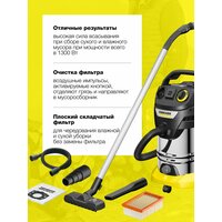 Купить Пылесос хозяйственный Karcher KWD 6 P S V30/8/22/T 1300Вт, 30л, нетканый фильтр-мешок, складчатый фильтр, штепсельная розетка с доставкой по всей России.