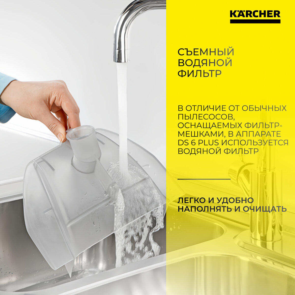 Купить Пылесос Karcher DS 6 Plus EU, с аквафильтром, 650 Вт, 4 насадки с доставкой по всей России. Пылесос Karcher DS 6 Plus EU, с аквафильтром, 650 Вт, 4 насадки: сравнение цен, характеристики, фото, актуальное наличие и цены.