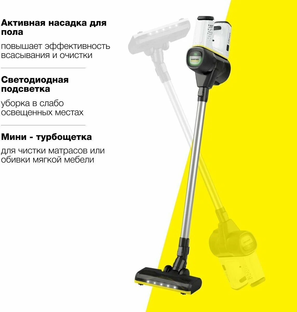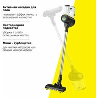 К числу многочисленных эффективных решений, реализованных в данной модели пылесоса для дома, можно отнести механизм для быстрого опустошения мусоросборника, функцию Boost и универсальную насадку для пола со светодиодной подсветкой для удобной уборки в недостаточно освещенных местах. Другими преимуществами пылесоса Керхер являются низкий уровень шума, наглядный индикатор состояния аккумулятора, выдающий также сообщения о неисправностях, и наличие отдельного инструмента для очистки фильтра.