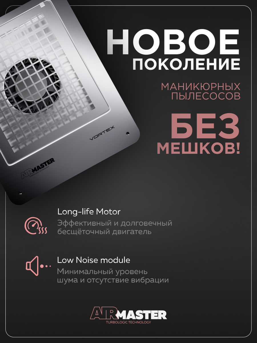 AirMaster — первые и единственные в России маникюрные пылесосы и вытяжки с бесщёточным турбинным вентилятором в компактном стальном корпусе!