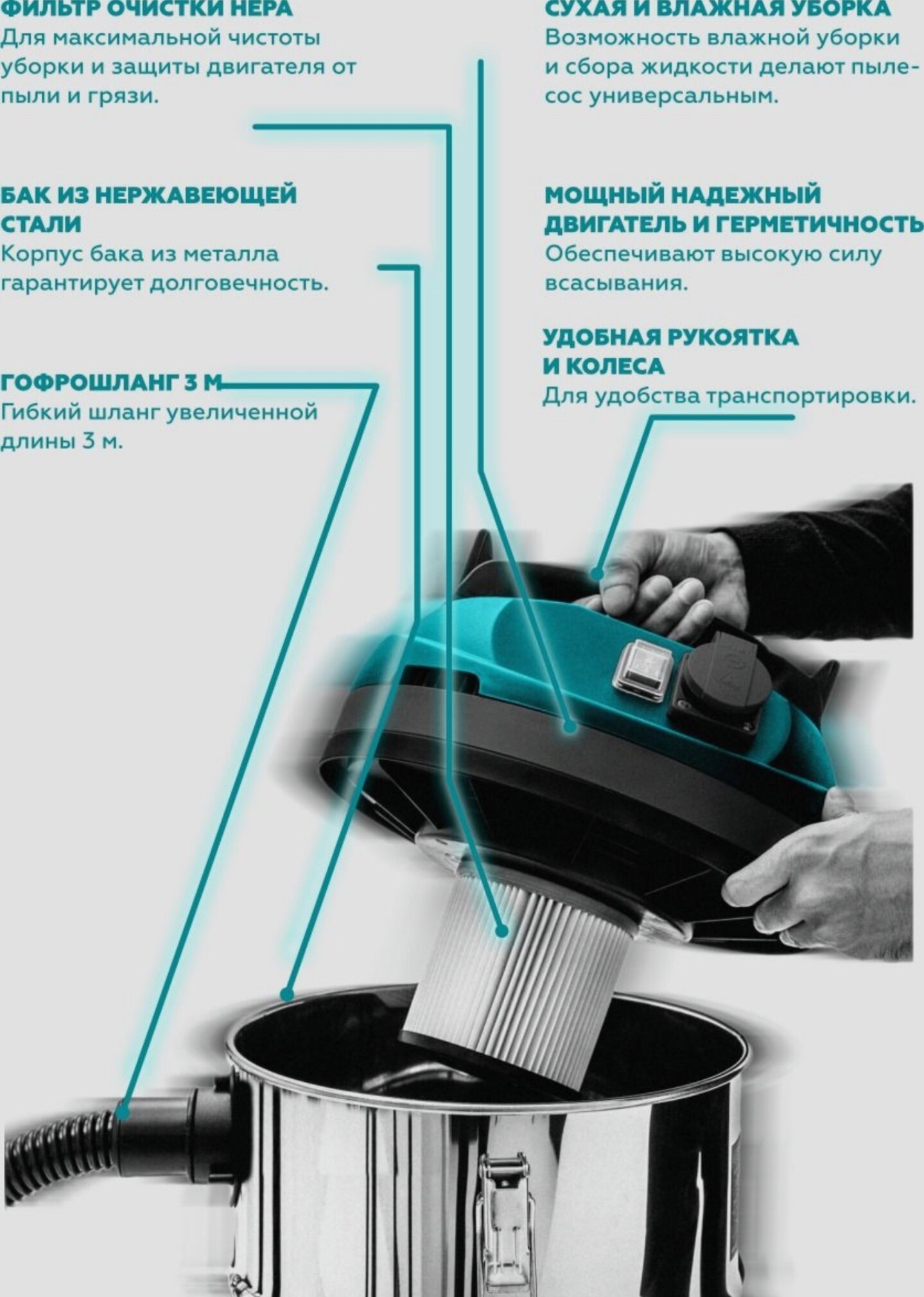 Пылесос NeroFF PVC-30L, 1600Вт, для сухой и влажной уборки, 30л, серебристый: сравнение цен, характеристики, фото, актуальное наличие и цены.