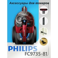 Philips Бытовой пылесос FC9735-81, красный, черный, 6 аксессуаров: сравнение цен, характеристики, фото, актуальное наличие и цены.