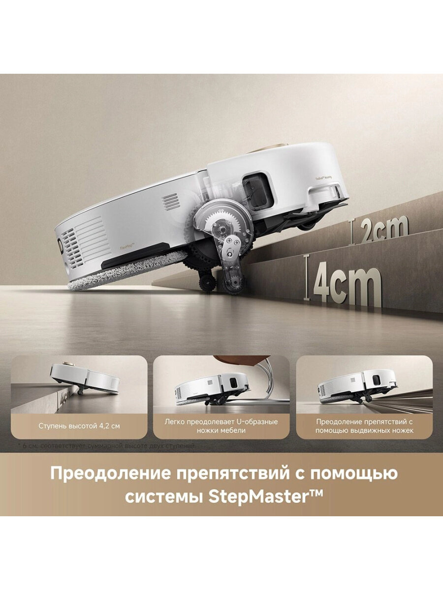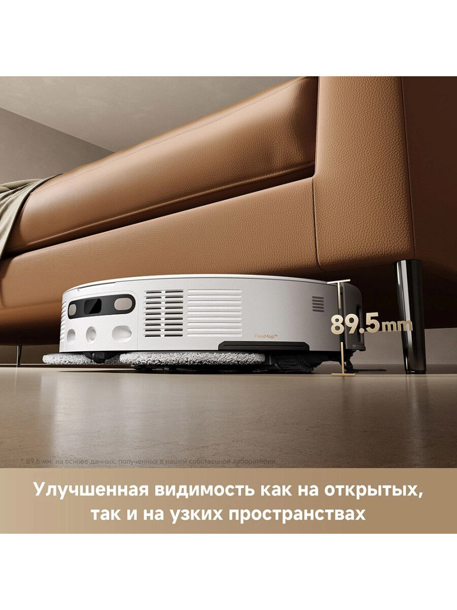Аккумулятор емкостью 6400 мАч обеспечивает до 190 минут работы, что подходит для уборки больших помещений.