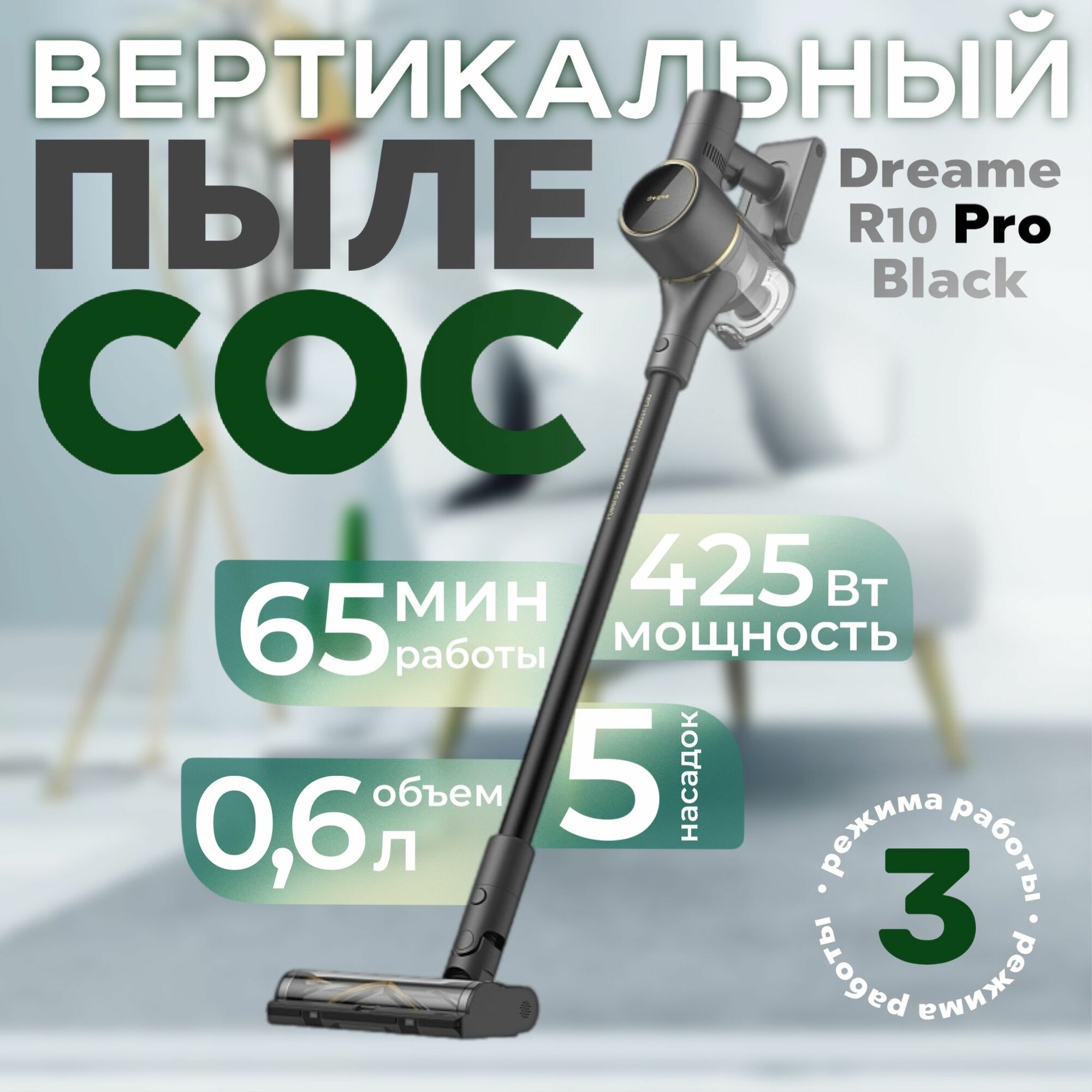 Пылесос вертикальный беспроводной Dreame R10 Pro, черный / аккумуляторный пылесос для дома с дополнительными насадками в комплекте и креплением на стену: сравнение цен, характеристики, фото, актуальное наличие и цены.