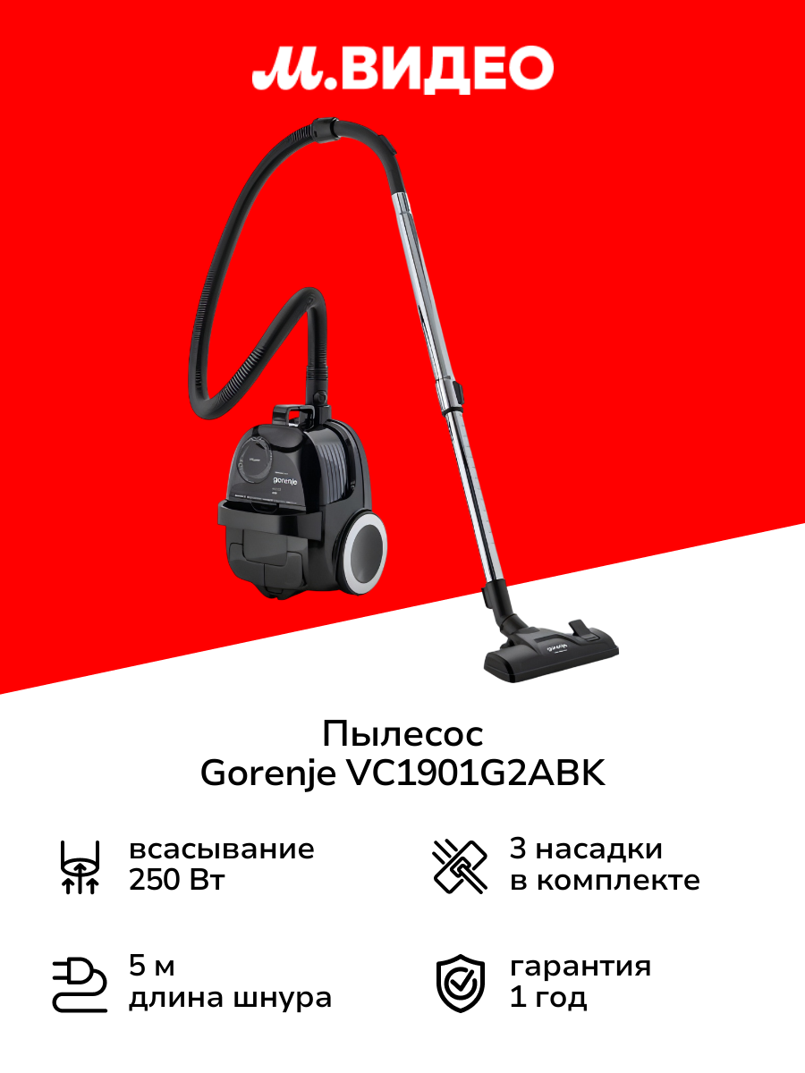 Купить Пылесос с контейнером для пыли Gorenje VC1901G2ABK с доставкой по всей России. Пылесос с контейнером для пыли Gorenje VC1901G2ABK: сравнение цен, характеристики, фото, актуальное наличие и цены.