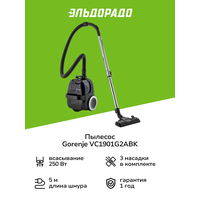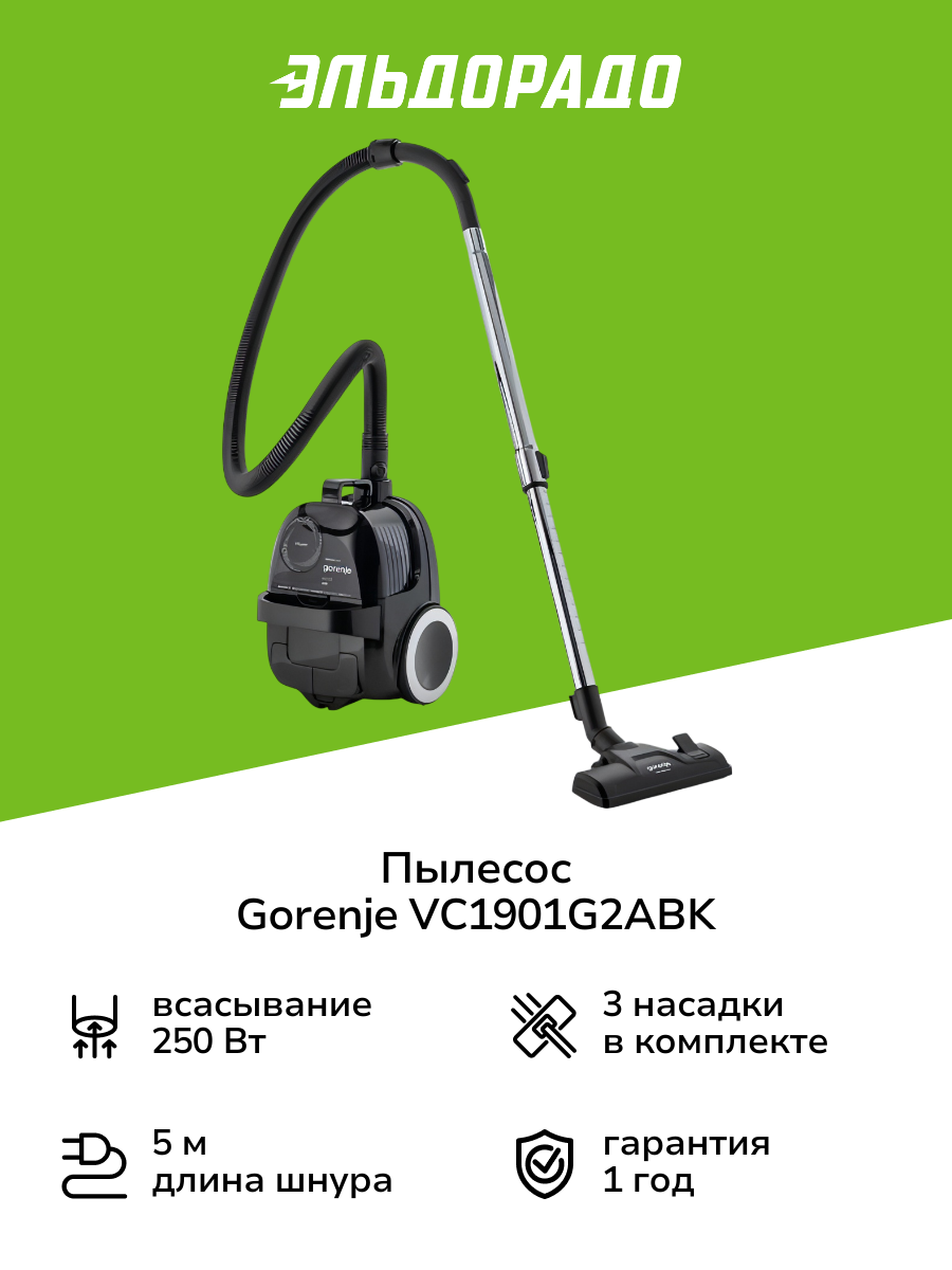 Купить Пылесос с контейнером для пыли Gorenje VC1901G2ABK с доставкой по всей России.