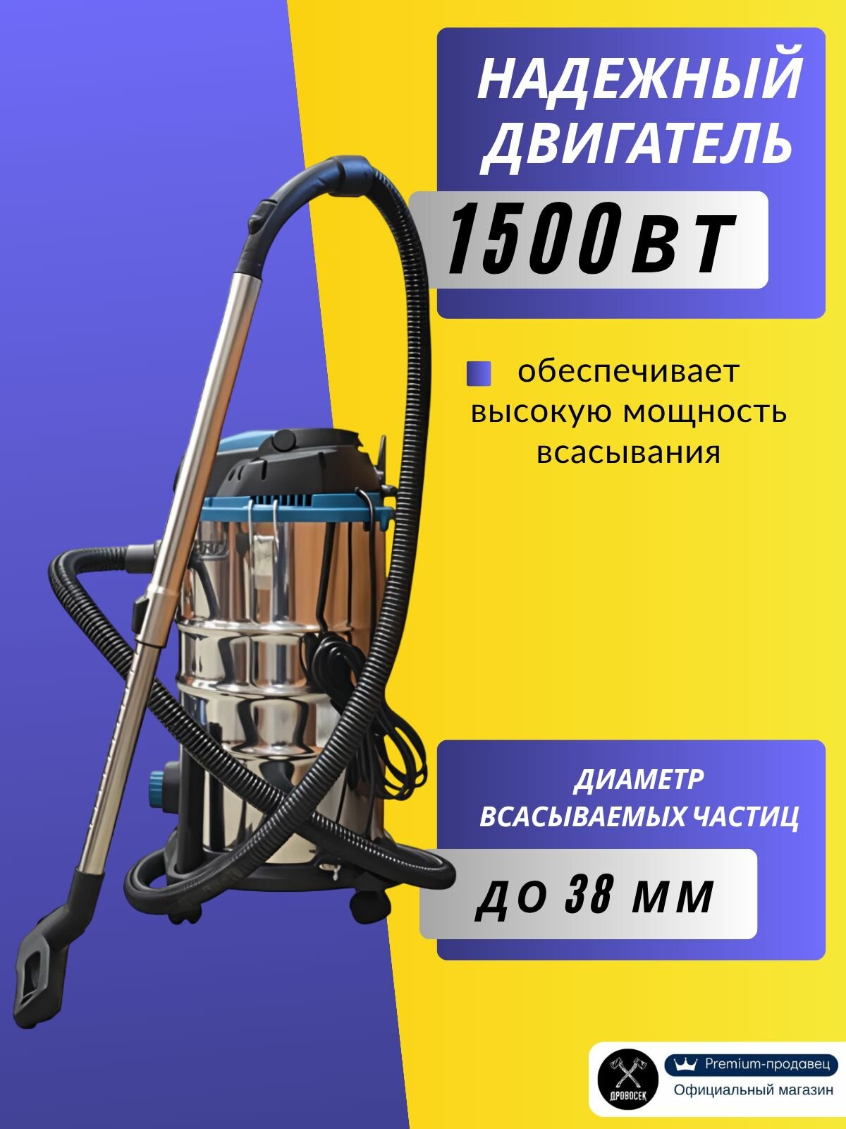 Купить Пылесос строительный INKAM VC-30U с розеткой (1500 Вт, 30 л, металл) промышленный для электроинструмента технический, подарок мужчине с доставкой по всей России.