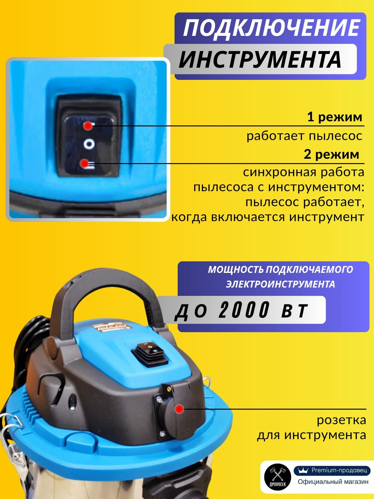 Пылесос строительный INKAM VC-30U с розеткой (1500 Вт, 30 л, металл) промышленный для электроинструмента технический, подарок мужчине: сравнение цен, характеристики, фото, актуальное наличие и цены.