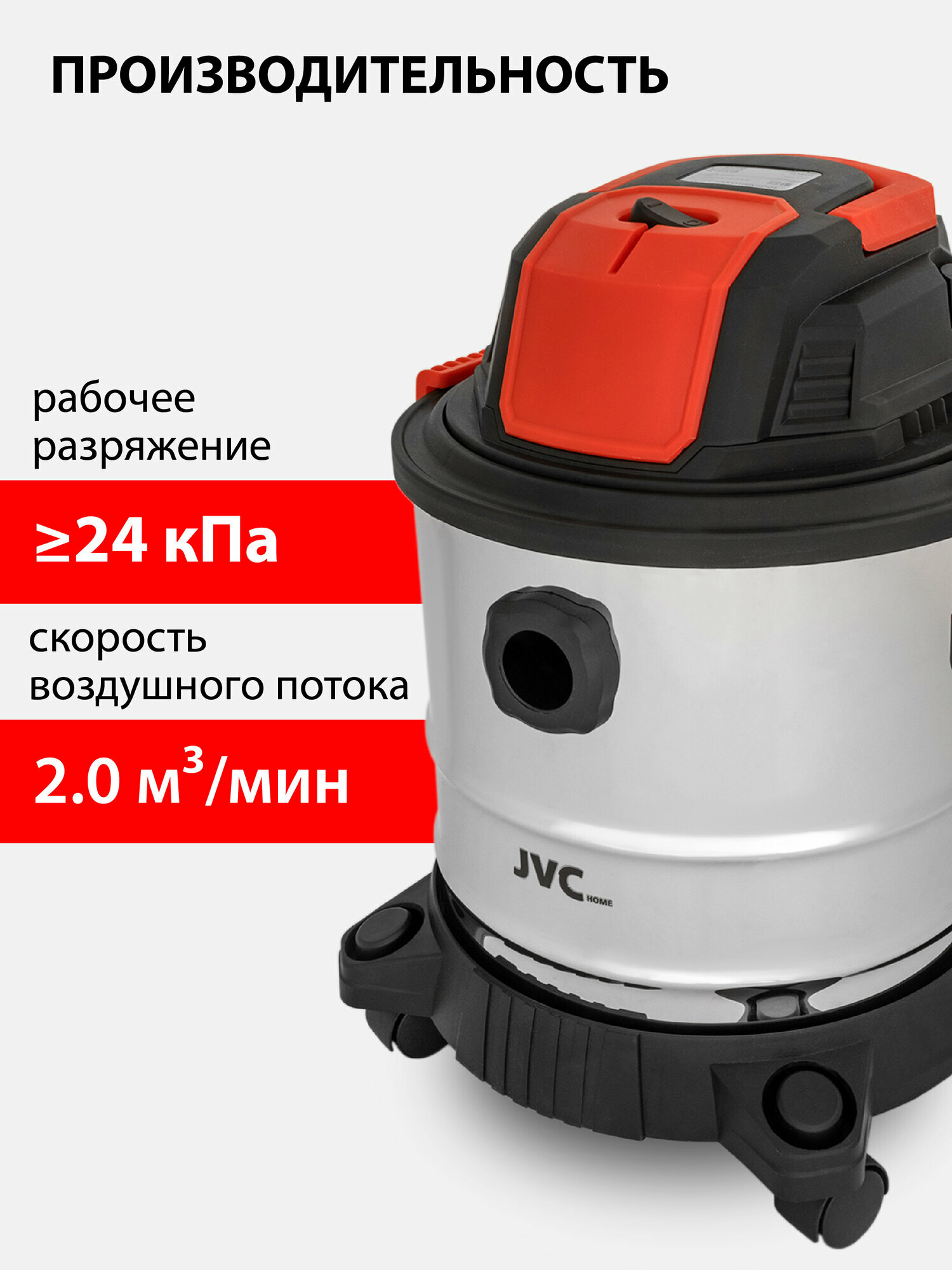 Купить Пылесос строительный JVC JH-VB220, металлический бак 20 л, сухая уборка, сбор жидкостей, функция выдувания, 1300 Вт с доставкой по всей России.