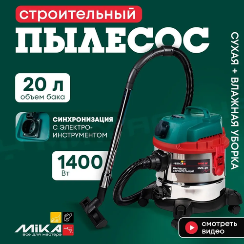 Купить Пылесос строительный Mika MVC-20, 1400 Вт, бак 20 л, сухая и влажная уборка с доставкой по всей России.