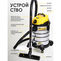 Купить Пылесос строительный ZORGEPRO VC-30 ( 1500 Вт, 30 литров, Шланг 3 М, НЕРА фильтр, сухая/влажная уборка ) с доставкой по всей России.