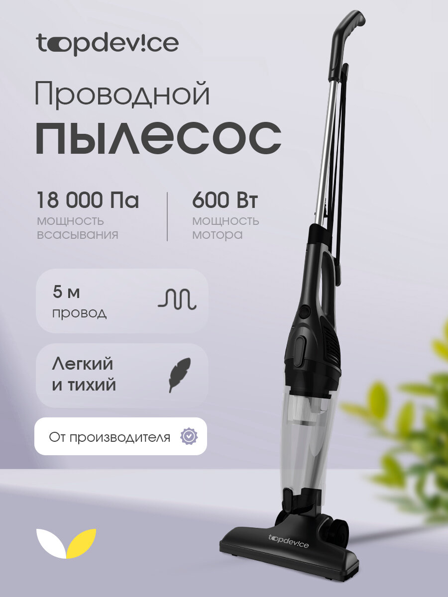 Купить Пылесос TopDevice, вертикальный, проводной, сухая уборка, контейнер, 600Вт, TDCVC100_BK с доставкой по всей России.