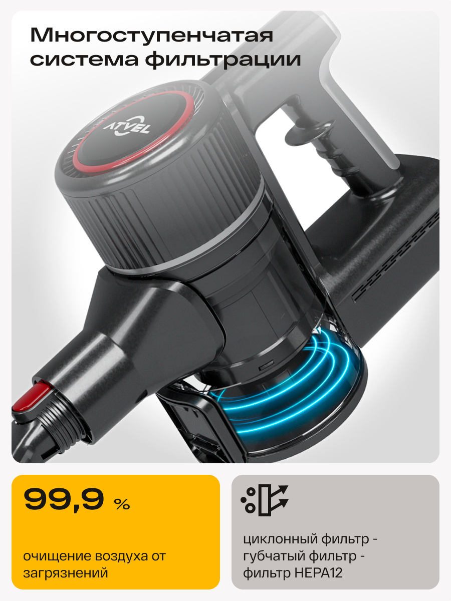 ATVEL G9 Pro Base - это мощный беспроводной пылесос с базой самоочистки и многофункциональными насадками для сухой уборки.