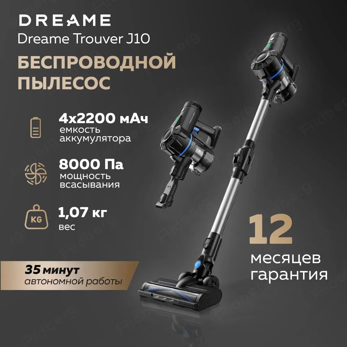 Пылесос вертикальный беспроводной Dreame Trouver J10, аккумуляторный пылесос для дома с креплением на стену и турбо щеткой (4 насадки) черный: сравнение цен, характеристики, фото, актуальное наличие и цены.