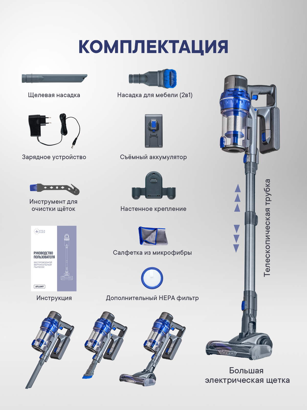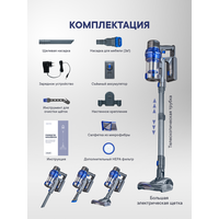 | В комплекте | зарядное устройство, насадка для автомобиля, насадка для мягкой мебели, подставка для хранения, универсальная насадка для сухой уборки, щелевая насадка, щеточка для очистки, электрощетка |