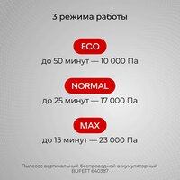 | В комплекте | зарядное устройство, настенный держатель, удлинительная трубка/шланг, универсальная насадка для сухой уборки, фильтр тонкой очистки |