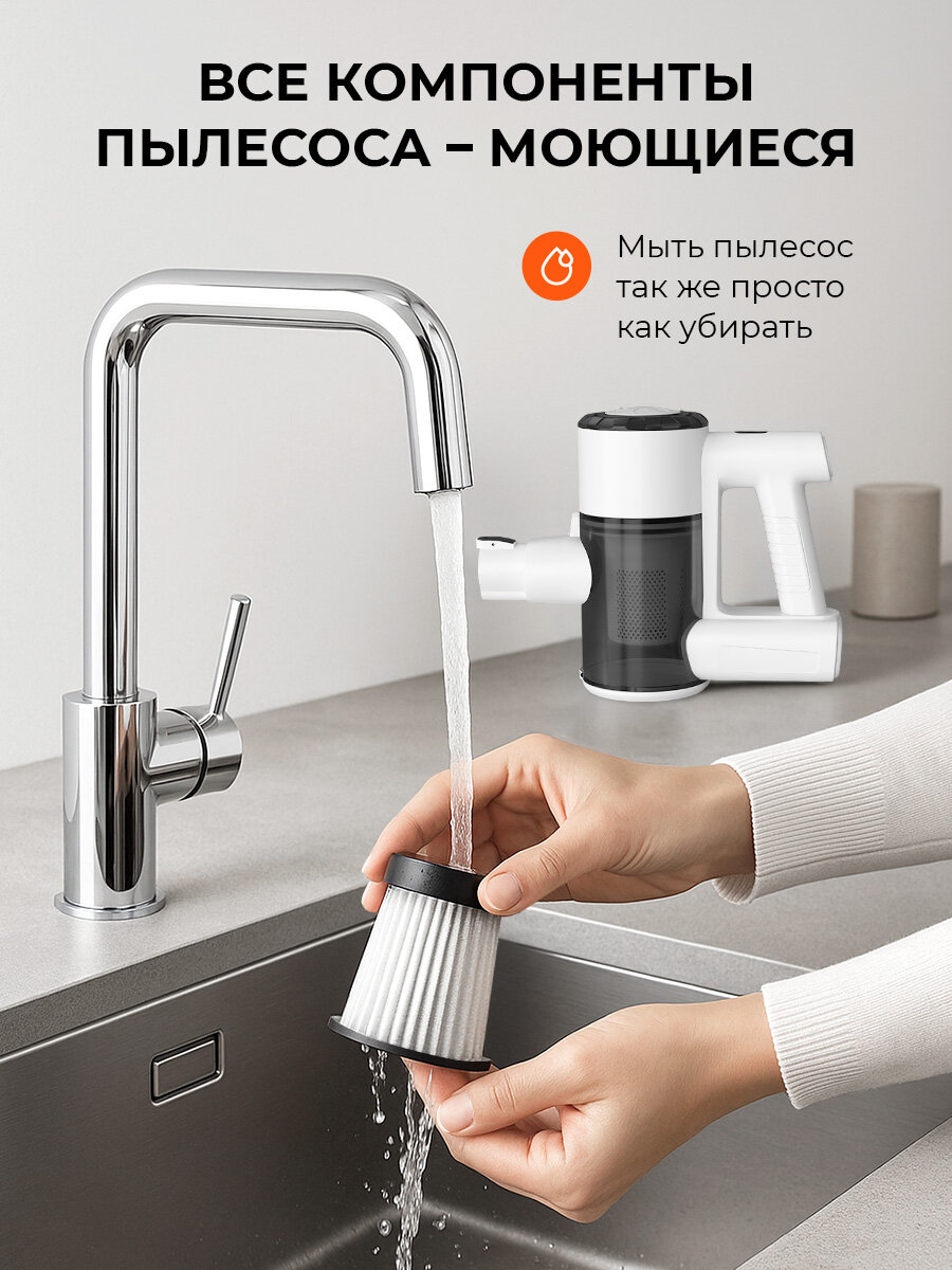 Купить Пылесос вертикальный моющий для дома беспроводной — 75 мин работы, мощность 3000 Вт «SPAWNSON» сухая и влажная уборка с доставкой по всей России.