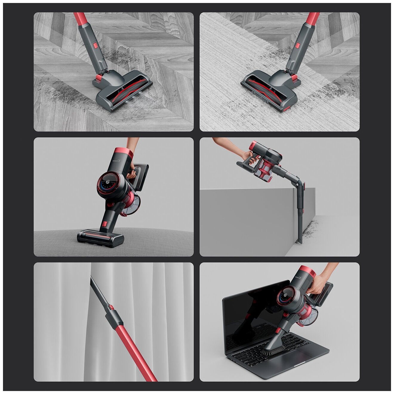 | Дополнительная информация | три режима работы: Eco режим (до 50 минут без подзарядки), базовый режим (до 25 минут), Turbo режим (до 15 минут); сила всасывания: 12 000, 17 000 и 24 000 Пa; материал трубки: металл; материал корпуса: АБС-пластик, алюминий; время зарядки аккумулятора: 4-5 ч; съемный аккумулятор; в комплект входит: пылесос, адаптер, насадка-щетка для точечной уборки, моторизированная виброщетка для мебели, щелевая насадка, основная моторизированная насадка с LED-подсветкой, дополнительный НЕРА-фильтр, настенное крепление для пылесоса |