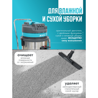 Применение: Этот пылесос сухой и влажной уборки представляет собой очень удобный аппарат в виде водопылесоса, пригодный для универсального применения на любых предприятиях ремесленной и промышленной сферы, например, в мастерских, при проведении строительных и строительно-отделочных работ, на предприятиях автосервиса и торговли, при уборке в зданиях, а также на предприятиях металлообрабатывающей, химической и фармацевтической промышленности. Аппарат используется в гаражах, на мойках, в различных сервисных центрах, для уборки производственных помещений, складов, цехов промышленных предприятий.