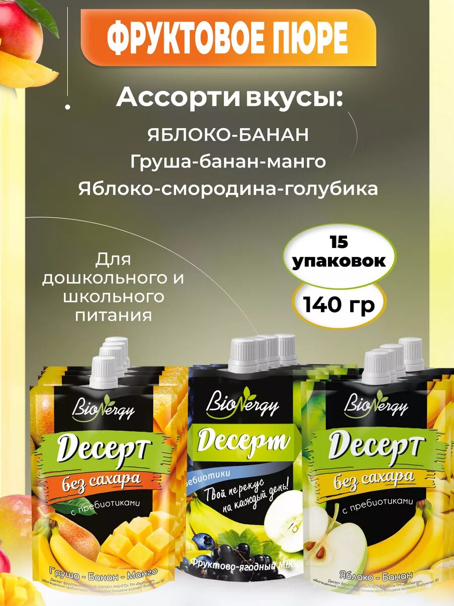 Пюре фруктовое набор Ассорти без сахара 15 шт: сравнение цен, характеристики, фото, актуальное наличие и цены.