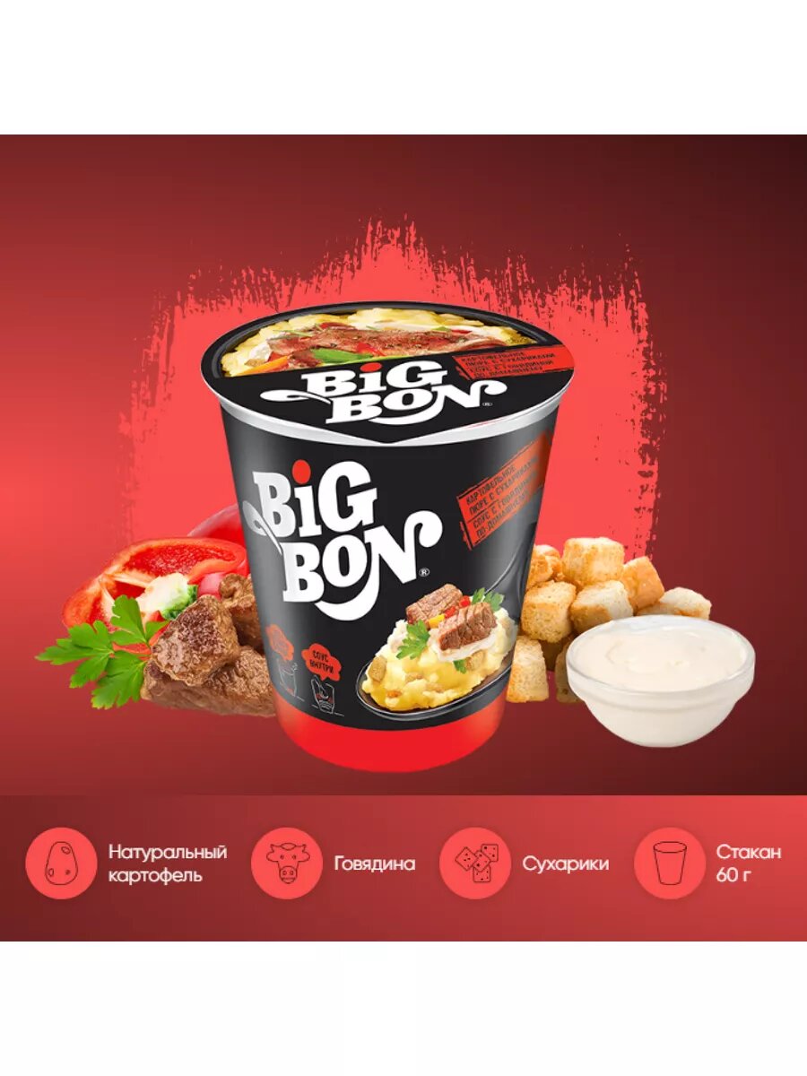 | Состав | пюре картофельное (хлопья картофельные, заменитель сухих сливок на растительной основе (жир растительный, сироп глюкозный, белок молока, эмульгатор Е471), сухарики пшеничные (мука пшеничная в/с, масло растительное, соль, дрожжи), лук репчатый жареный сушеный, соль, усилители вкуса и аромата Е621,Е635), сахар, ароматизатор (сливки), зелень петрушки и лук зеленый сушеные, куркума, антиокислитель Е223), соус кулинарный (жир растительный, соль, ароматизатор (говядина), сахар, мясо говядины сушеное, зелень петрушки сушеная); продукт может содержать незначительное количество сельдерея и продуктов переработки яиц |