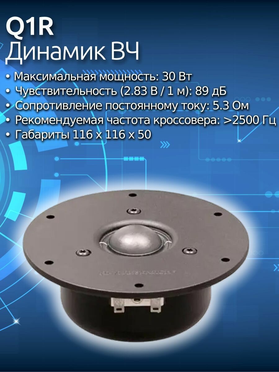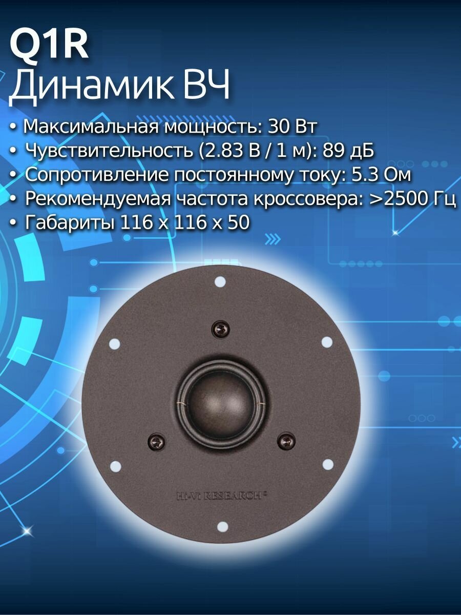 HiVi Swan Q1R — это эталонный высокочастотный динамик премиум-класса с мягким купольным излучателем диаметром 28 мм. Создан для тех, кто ценит чистый звук, выразительный тон и минимальные искажения. Высокие частоты в исполнении Q1R наполняют звучание души вашей акустической системы.