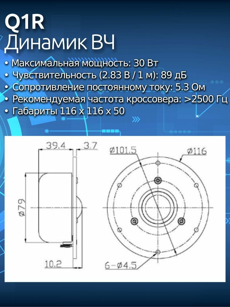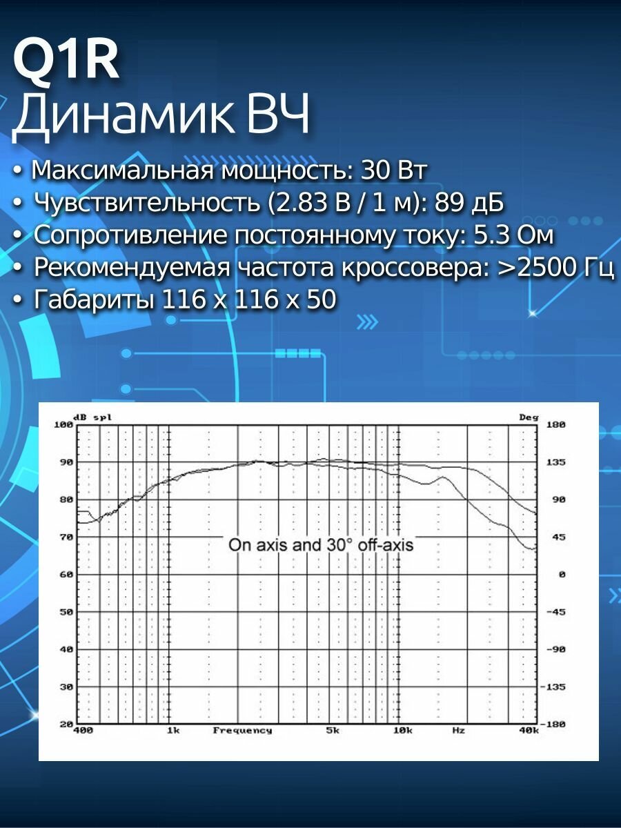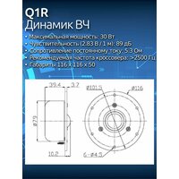 - Рекомендуемая частота кроссовера: >2500 Гц.