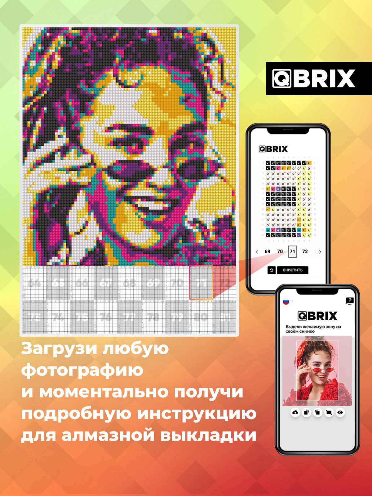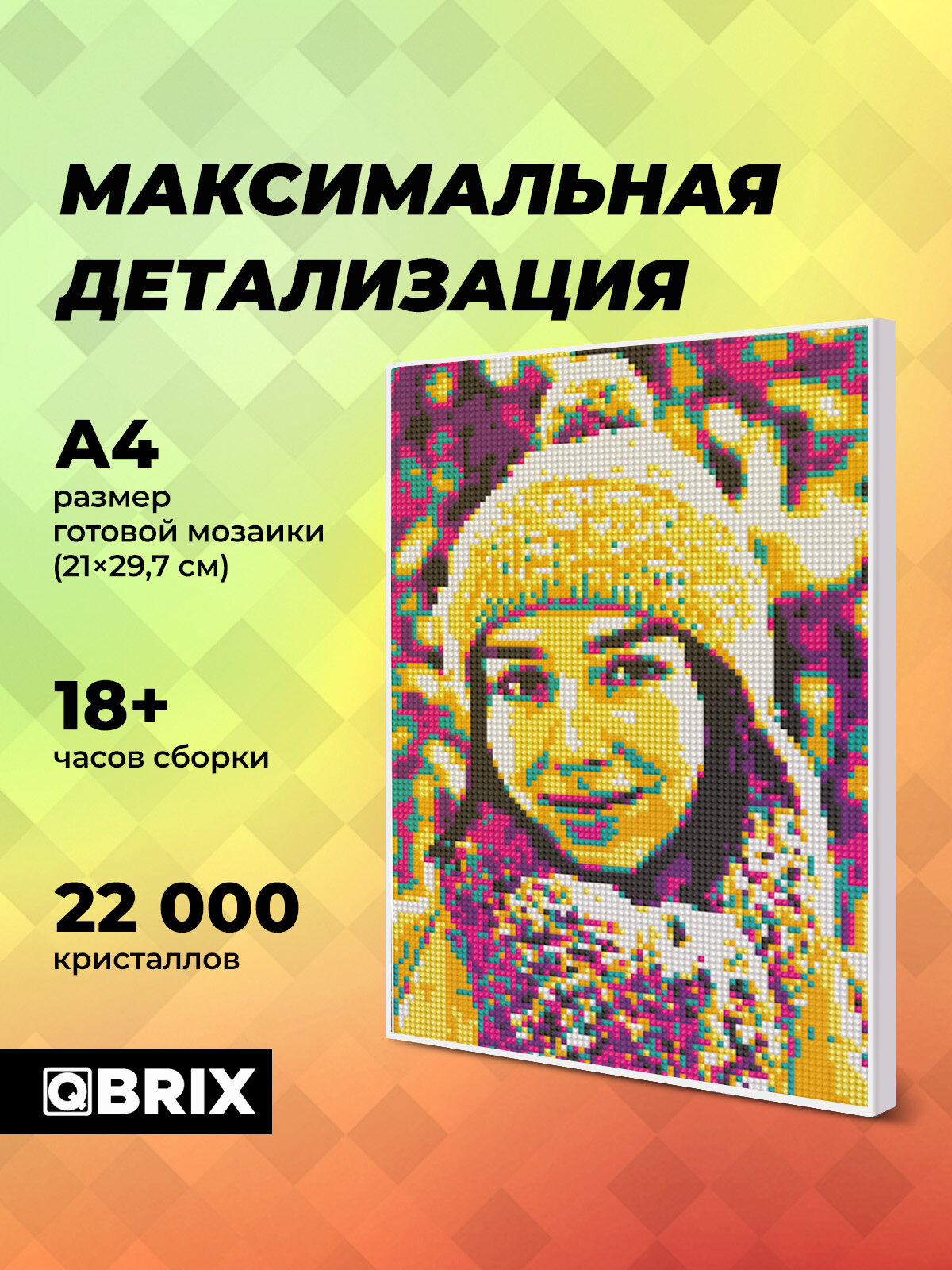 QBRIX Алмазная мозаика по фото на подрамнике 20х30 POP-ART (А4, квадратные стразы, оригинальный подарок для детей и взрослых): сравнение цен, характеристики, фото, актуальное наличие и цены.