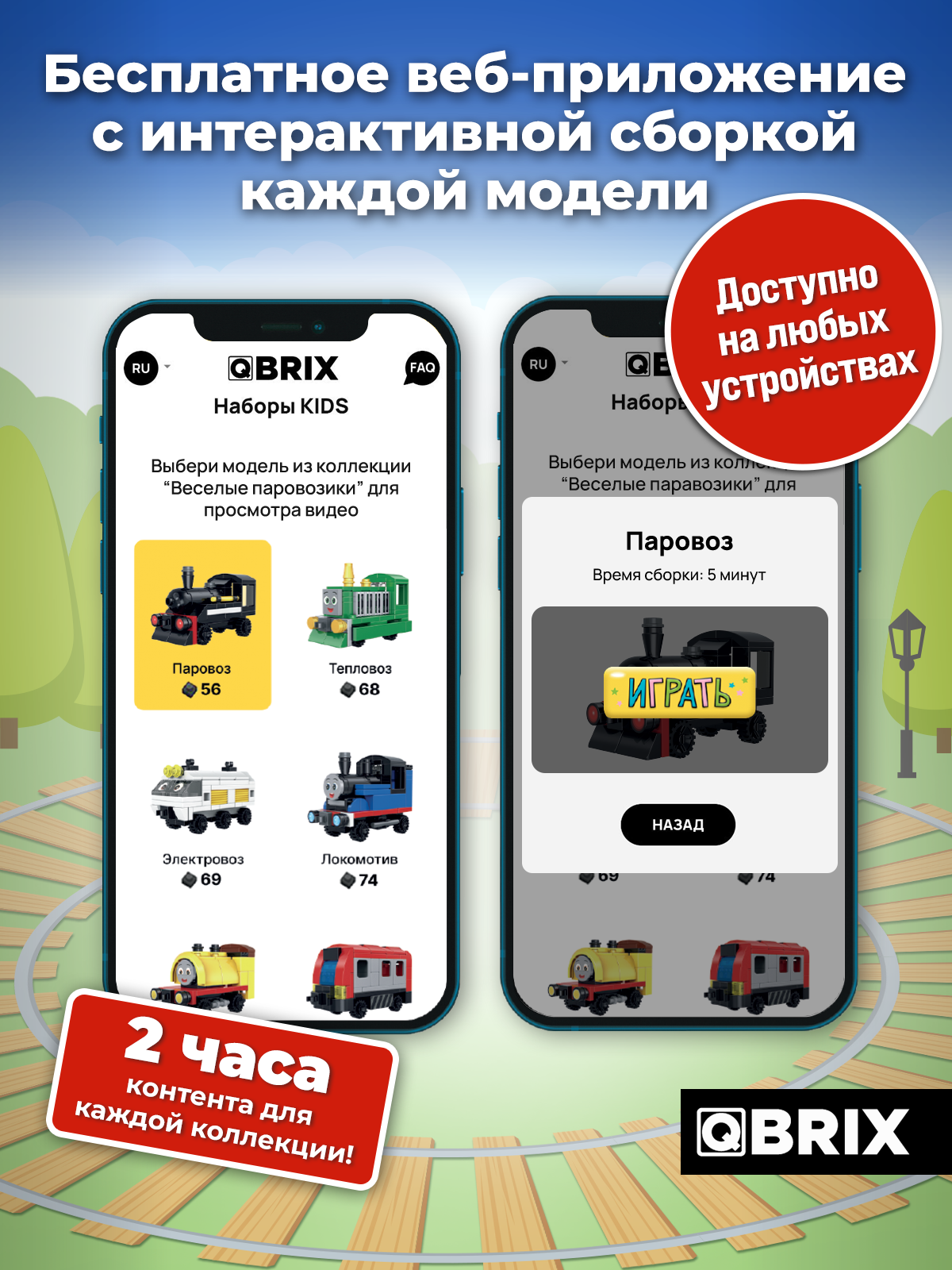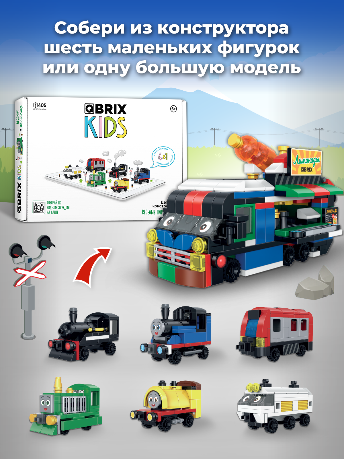 Купить QBRIX KIDS Конструктор детский Веселые паровозики пластиковый для мальчика, девочки от 6 лет совместим с Lego (по мотивам мультфильма Паровозик Томас) с доставкой по всей России.