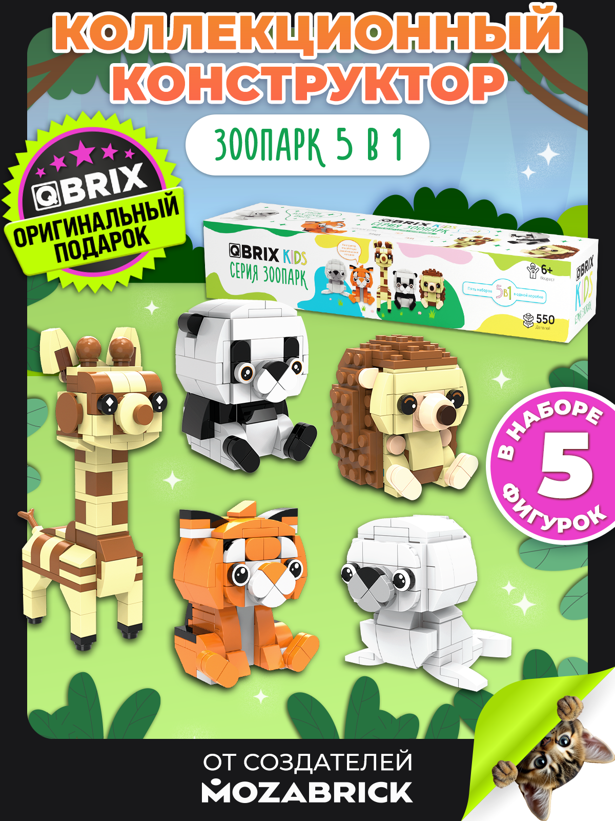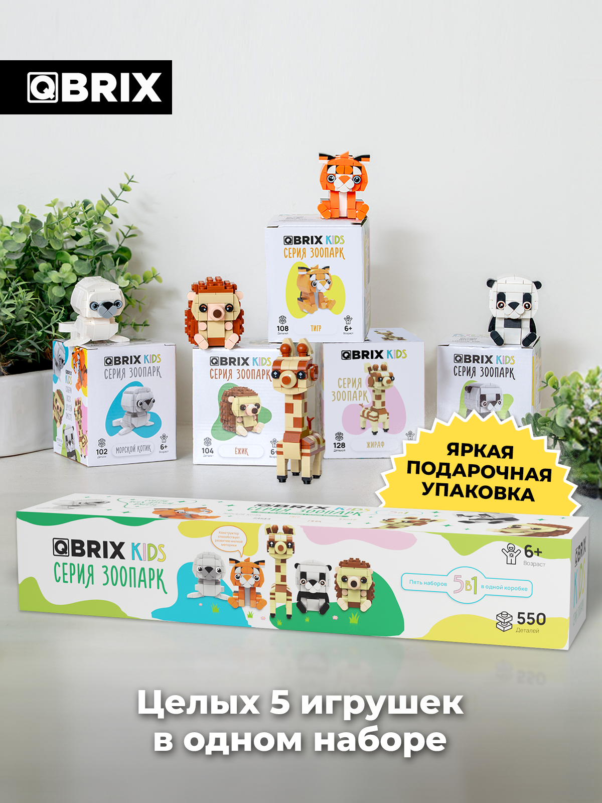 Купить QBRIX KIDS Конструктор пластиковый детский Зоопарк 5в1 Жираф, морской котик, ежик, тигр, панда для мальчика и девочки от 6 лет совместим с Lego (лего) с доставкой по всей России.