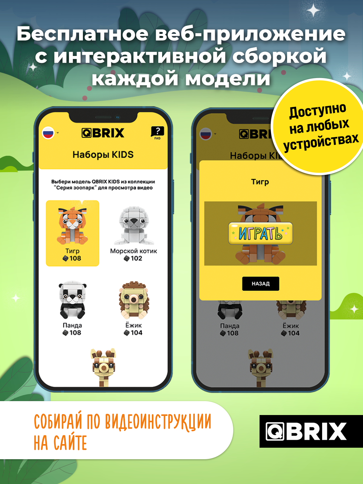 QBRIX KIDS Конструктор пластиковый детский Зоопарк 5в1 Жираф, морской котик, ежик, тигр, панда для мальчика и девочки от 6 лет совместим с Lego (лего): сравнение цен, характеристики, фото, актуальное наличие и цены.