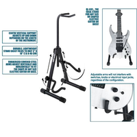 Подпорка для грифа с регулиремой высотой имеет предотвращающую падение гитары с подставки защелку с мягким покрытием