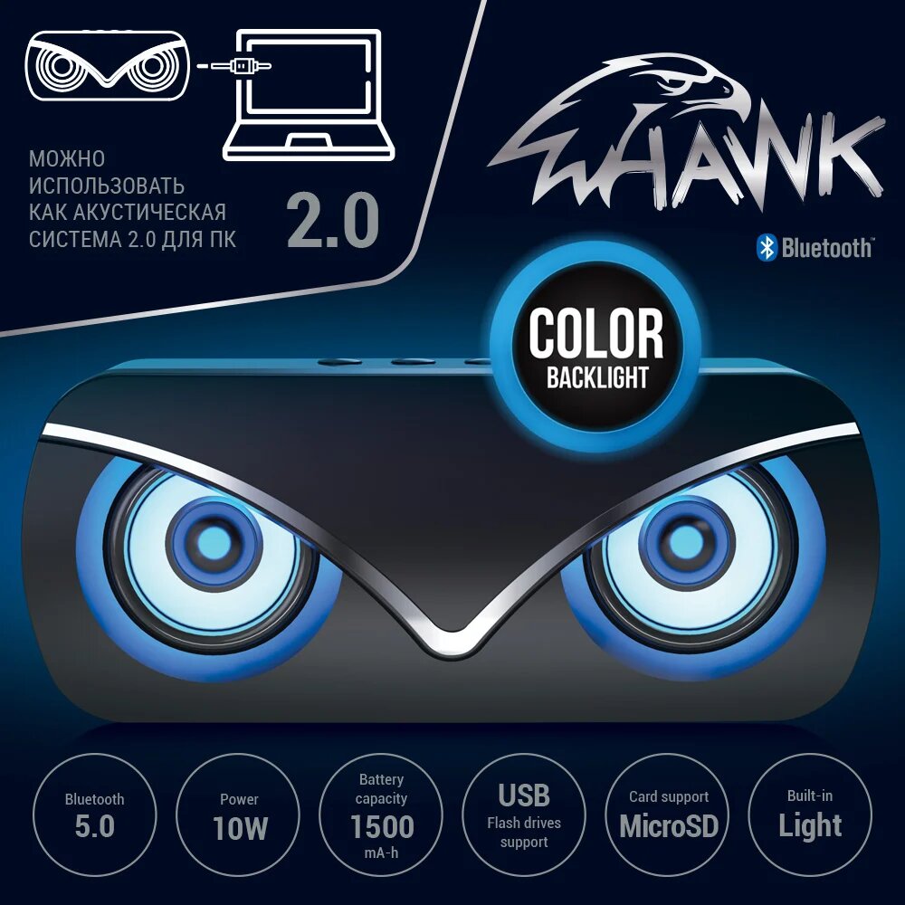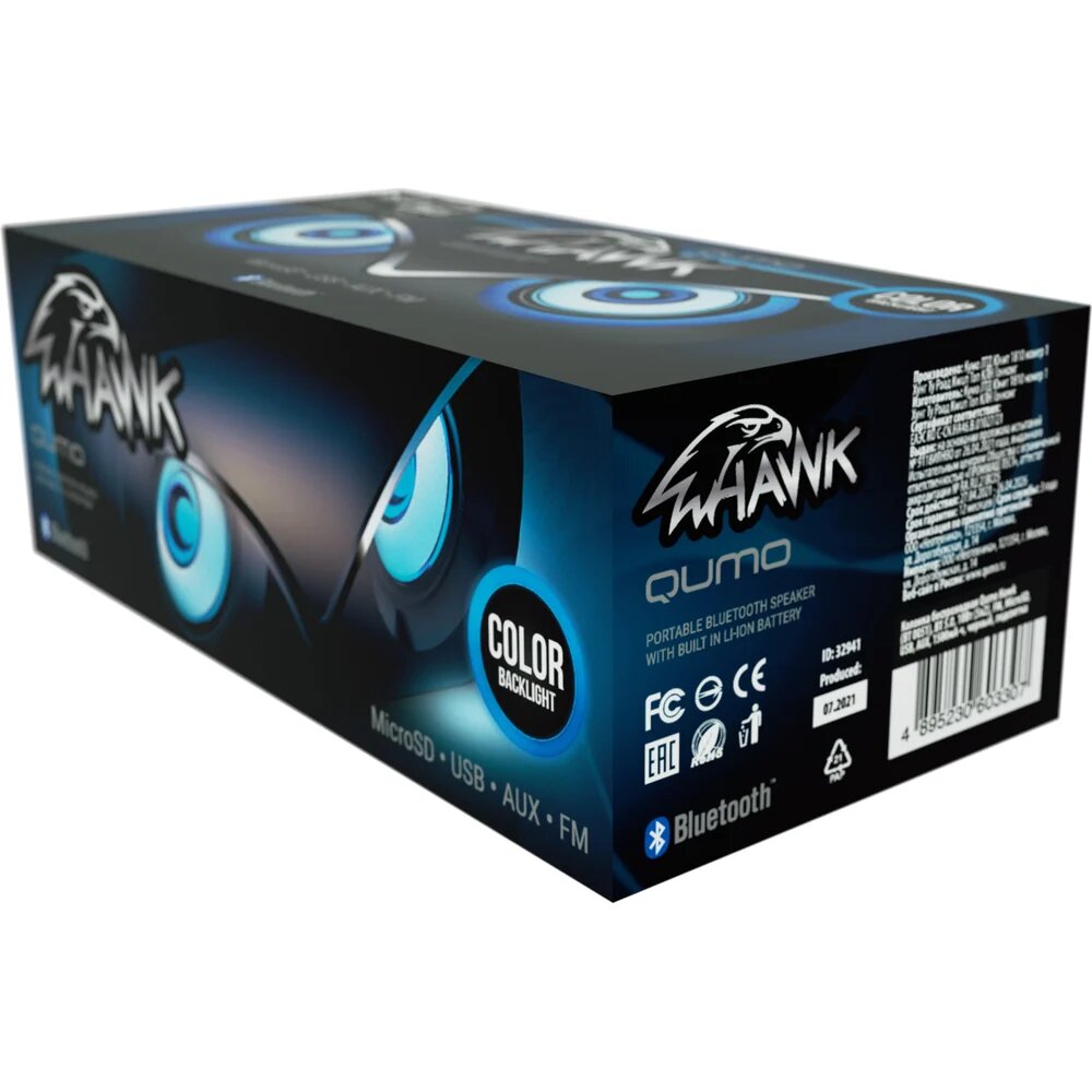 QUMO Колонка беспроводная Hawk ВТ 051 , BT5.0, 10Вт, FM, MicroSD, USB, AUX, подсветка, 1500мА-ч 32941: сравнение цен, характеристики, фото, актуальное наличие и цены.