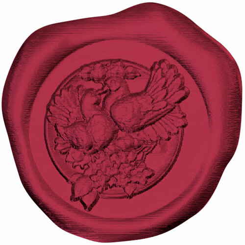 Рабочая поверхность изготовлена из латуни, она не повреждается от горячего сургуча и долговечна. Диаметр оттиска – 25 мм. Большая деревянная ручка не нагревается, удобно лежит в руке, работать с ней легко и безопасно.