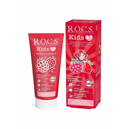 R.O.C.S. Зубная паста детская Kids Ягодная фантазия со вкусом малины и клубники, от 4 до 7 лет, 45 г, 18 шт.: сравнение цен, характеристики, фото, актуальное наличие и цены.